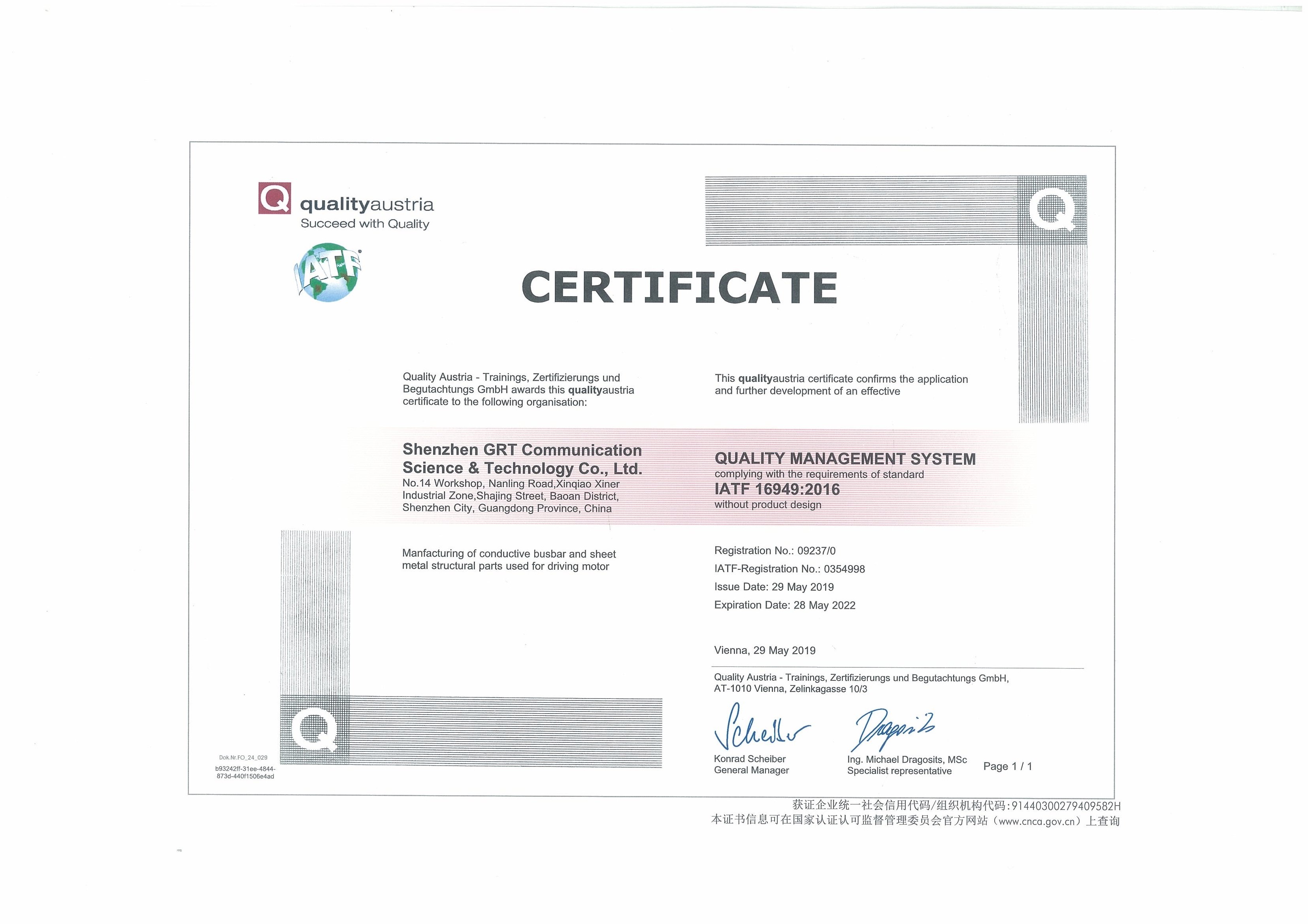 從2018年10月開始籌備,至19年6月止,通過公司各部門全力配合,公司ISO16949體系認(rèn)證全面通過;